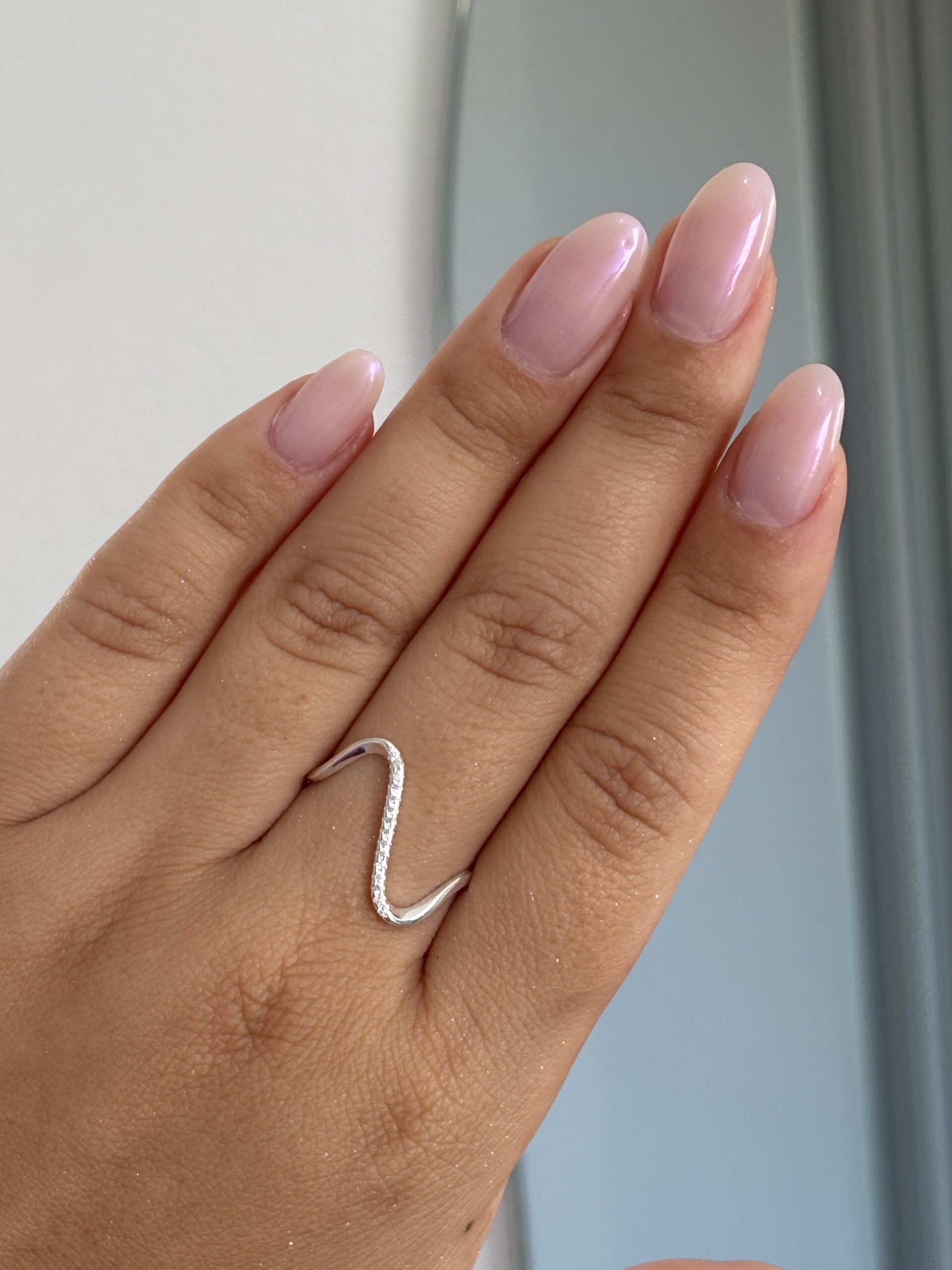 Um anel de design fluido, com uma onda elevada que cria destaque e charme imediato. Moderno e minimalista, é perfeito para quem busca uma peça elegante, diferente e cheia de personalidade.