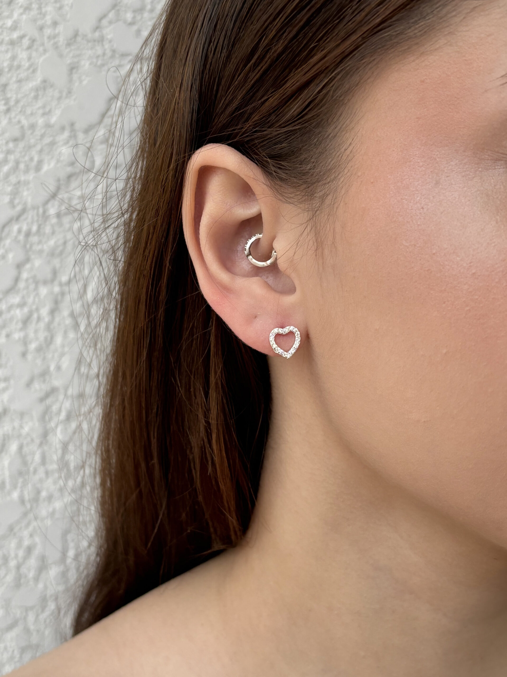 Delicado e cheio de brilho, o Brinco Coração traz um design encantador: o contorno cravejado com zircônias reluzentes e o centro vazado que confere leveza e elegância à peça. Um acessório que combina romantismo e sofisticação, ideal para destacar qualquer look com um toque especial.