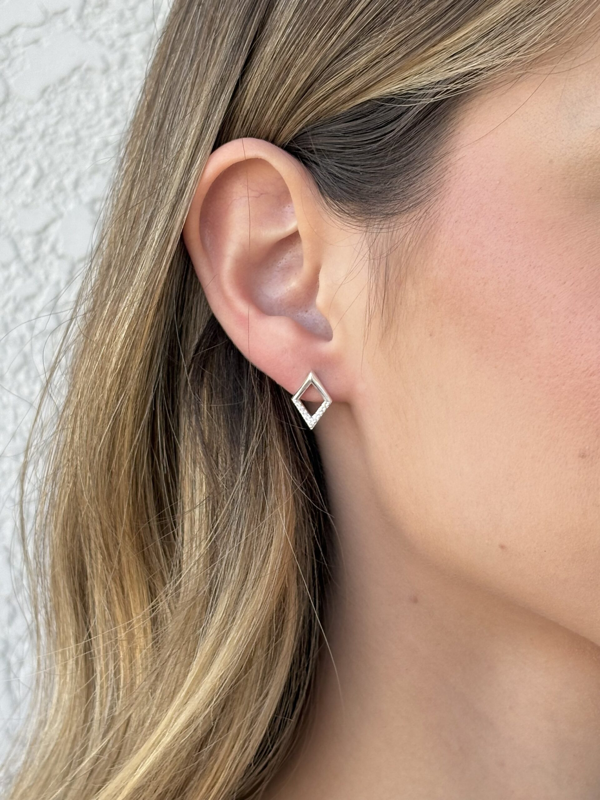 Moderno, delicado e cheio de brilho, este brinco em formato de losango em Prata 925 possui pequenas pedrinhas cravejadas na base, criando um contraste sofisticado entre o design geométrico e o brilho sutil das pedras. O resultado é um acessório elegante, leve e cheio de personalidade.