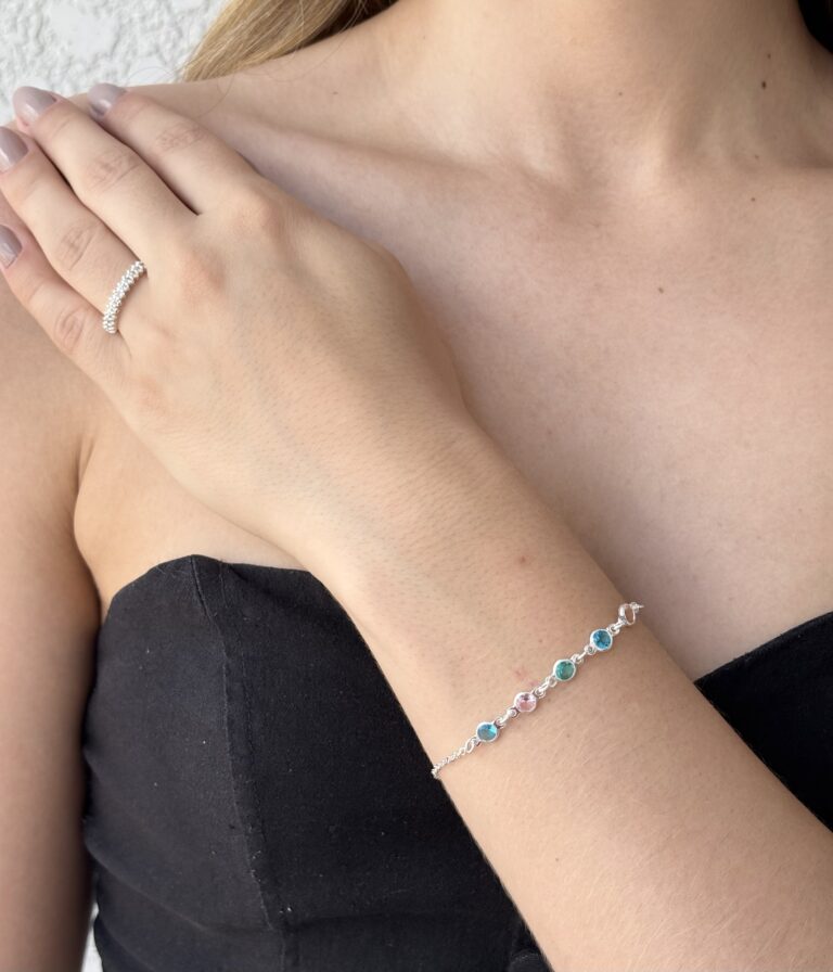 Vibrante, delicada e cheia de personalidade, esta pulseira de zircônias coloridas em Prata 925 traz um brilho alegre e sofisticado para o seu visual. Cada zircônia possui um tom único, criando um efeito harmonioso e moderno que ilumina o pulso de forma suave e encantadora.